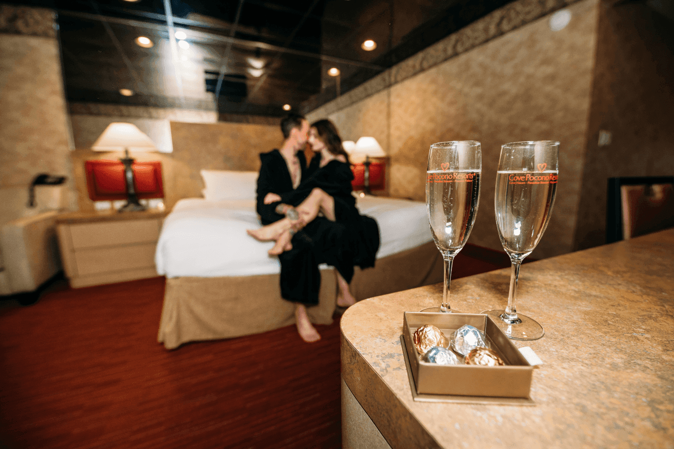 Located in the heart of the Pocono Mountains, Paradise Stream Resort is a romantic retreat on private Lake Eden. A honeymoon hotspot, this four-season resort property features 144 suites, two restaurants, two bars and the Red Apple Nightclub, a hot spot for live entertainment every single night. All day long, guests enjoy a variety of indoor and outdoor activities and amenities when they’re not relaxing in one of our signature suites, featuring amenities like heart-shaped hot tubs and our world-famous seven-foot-tall Champagne Tower.